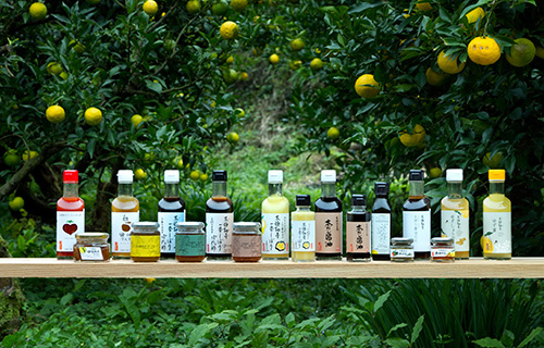 収穫から24時間以内に手搾りし瓶詰めした木頭ゆず一番搾り果汁、農薬・化学肥料を一切使っていない柚子を使ったぽん酢、柚子こしょうなど幅広い商品を開発しています。